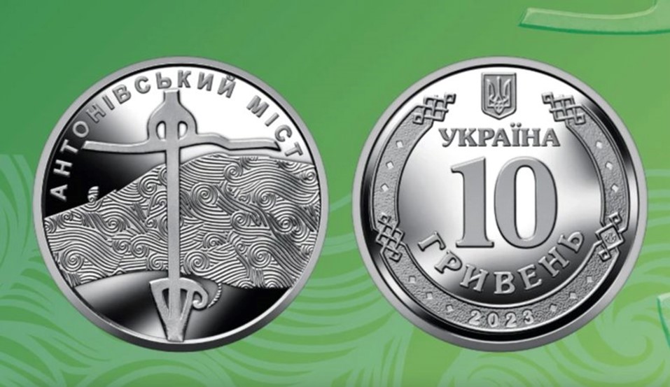 Монета посвящена наиболее упоминавшемуся мосту в Украине — Антоновскому — одной из трех основных переправ через Днепр в Херсонской области, стратегически важному объекту для региона и страны. На реверсе монеты – стилизованное изображение моста и реки Днепр с высоты, а также транспортные развязки на обоих концах переправы. На аверсе – номинал монеты, год чеканки и герб Украины в обрамлении древнерусского орнамента.В  денежный оборот будут  введены 10 млн монет. Глава НБУ Андрей Пышный отметил, что памятная монета будет символически напоминать об единении, отваге и выносливости украинского народа в условиях российской агрессии. Теперь всем известный Антоновский мост навсегда останется  на изображении  памятной  монеты.