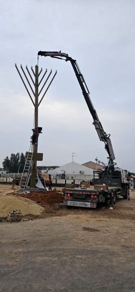 В Сдероте, на том месте где стоял полицейский участок, подвергшийся нападению и разрушению в Симхат Тора, вчера вечером была установлена огромная 14-метровая ханукия.