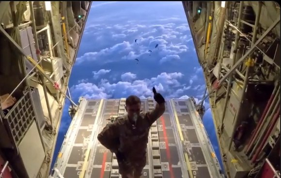 Это доставка  гумпомощи по воздуху.В это время на земле: террористы ХАМАС вновь захватили колонну с гуманитарной помощью, проходящую через КПП Рафах:
