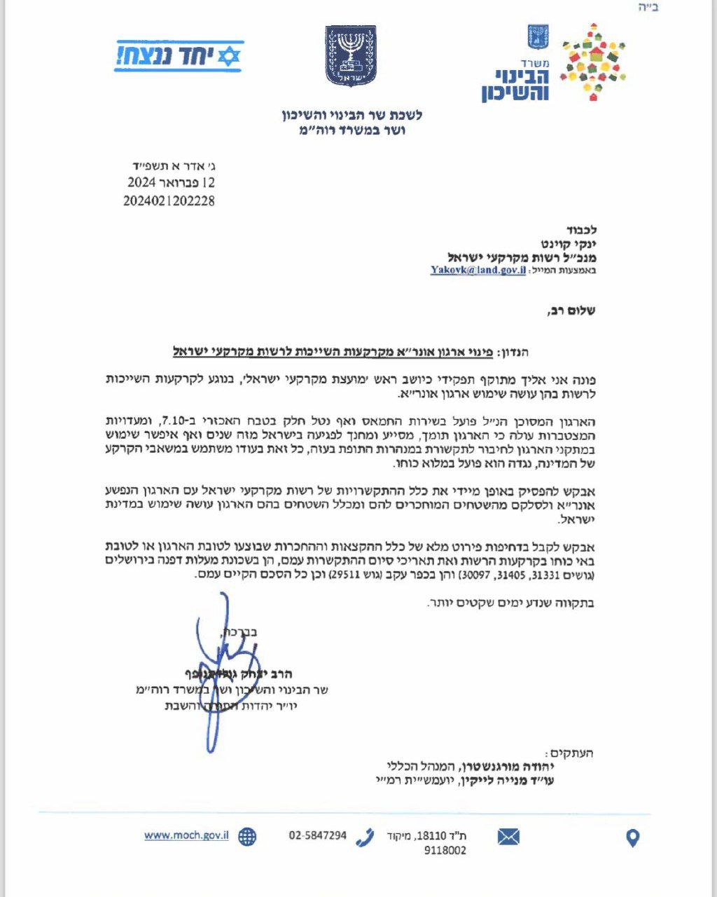 Министр иностранных дел Израиля Исраэль Кац и министр внутренних дел Моше Арбель сегодня (понедельник) объявили Франческу Альбанезу, специального посланника ООН по правам человека в палестинских территориях, персоной нон грата в государстве Израиль в ответ на ее скандальное заявление о том, что «жертвы 7 октября были убиты не за их еврейство, а в ответ на израильское подавление».