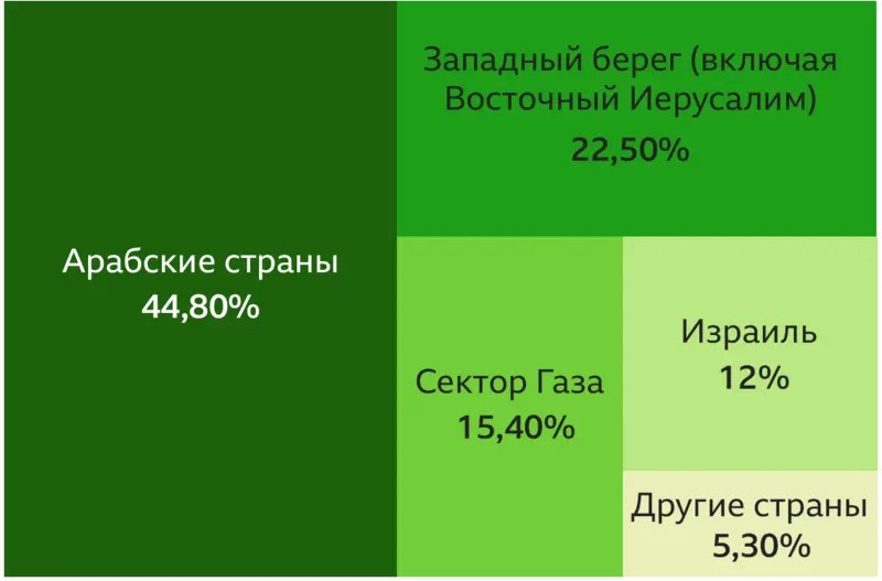 В Европе больше всего палестинцев живет в Германии, за ней следуют Великобритания, Греция, Франция, Дания и Швеция.