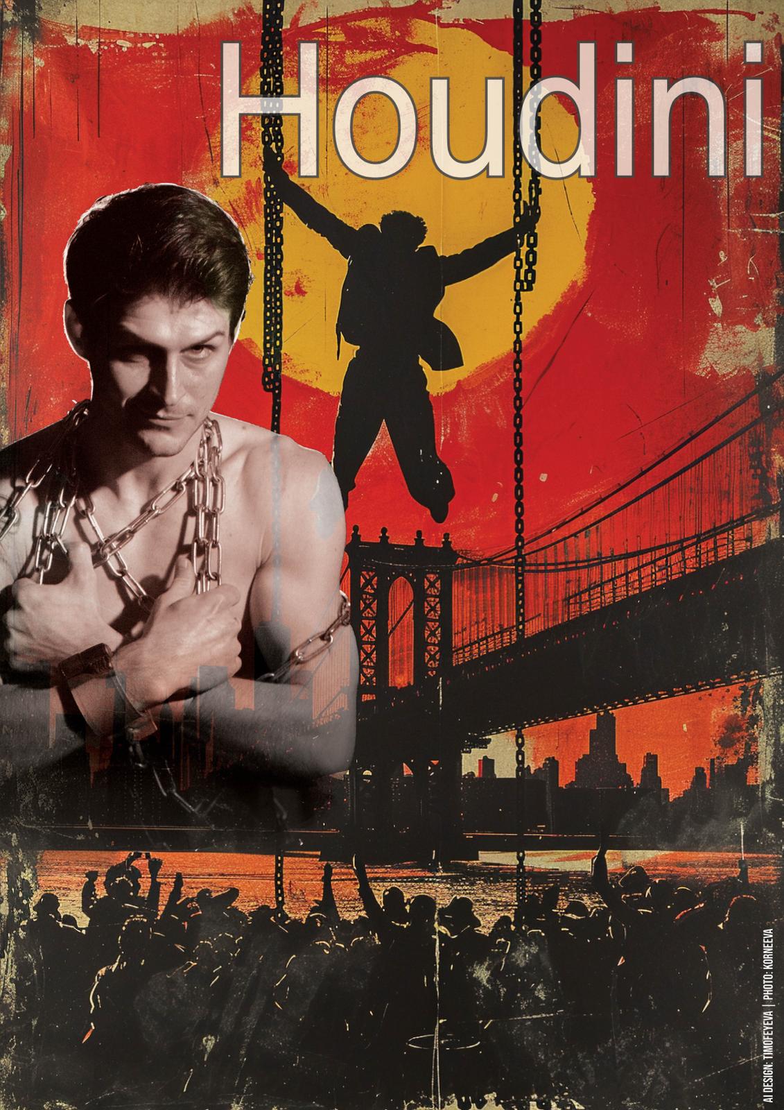 Хореограф спектакля Надя Тимофеева признается, что ее завораживает личность этого человека — в своих шоу он умел освободиться от любых цепей, при этом смеялся над теми, кто верил в «сверхъестественное». Гудини смеялся и над смертью, но смерть застигла его в расцвете карьеры в результате досадного инцидента.
