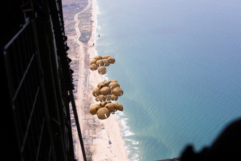 ВВС Германии заявили сегодня, что сбросили в сектор Газа 4,4 тонны гуманитарной помощи совместно с армиями США, Египта и Иордании.