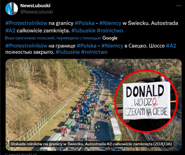 Фермеры выдвинули множество требований, среди которых два основных: отказ от беспошлинной торговли с Украиной и полное закрытие украинско-польской границы для грузовиков.