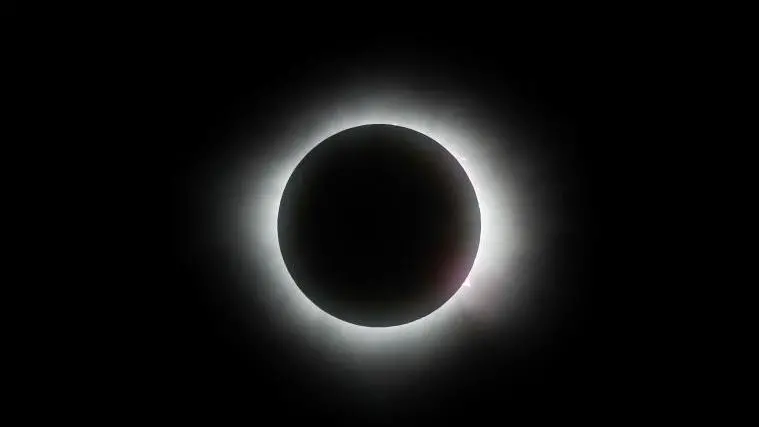 В ходе этго затмения Луна полностью закрывает Солнце, и небо темнеет на четыре минуты.