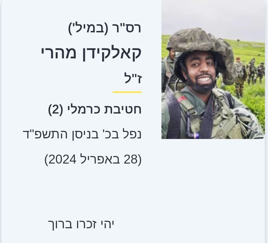 Имена погибших солдат от Елена 30.04.2024 30.04.2024 0 комментарий Разрешено к публикации имена погибших солдат. Старшина резерва Идо Авив, 28 лет, из Кармиэля, боец 9232-го батальона, 679-й бригады «Уцват Ифтах». Старшина резерва Калкидан Мехари, 37 лет, из Петах-Тиквы, боец 223-го батальона, 2-й бригады «Кармели». יהיה זכרם ברוך важное Подпишитесь на новости на нашем Телеграм канале Поделиться 0 FacebookTwitterPinterestLinkedinVKOdnoklassnikiRedditWhatsappSkypeViberEmail Оставить комментарий Save my name, email, and website in this browser for the next time I comment. Этот сайт защищен reCAPTCHA и применяются Политика конфиденциальности и Условия обслуживания применять. Публикации по теме Территории в обмен на мир? 10.08.2025 Ракета из Йемена перехвачена 29.07.2025 Ультиматум или размышления? 29.07.2025 Группа Рами Леви запускает новый проект в сфере жилой недвижимости и примет участие в... 29.07.2025 Началась подготовка к новому тендеру на эксплуатацию порта «Эйлат» 29.07.2025 Бисмут выбран председателем комитета иностранных дел и обороны 24.07.2025 предыдущая публикация 1 мая повышение цен в супермаркетах следующая публикация Автомобиль министра нацбезопасности Бен-Гвира попал в аварию