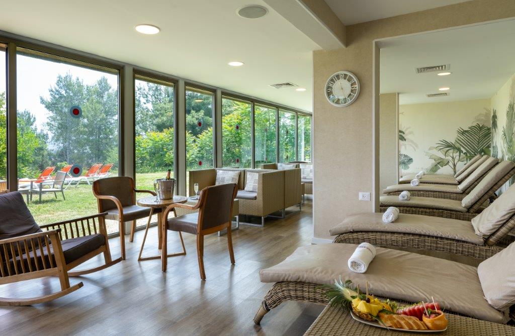 После процедур Вы можете посетить уютную  комнату отдыха, где вам предложат горячие напитки и легкие закуски или отдохнуть на жезлонгах в открытом комплексе.