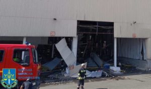 Еще фото с места прилета по складам «Таврии».В результате прилета горят потребительские товары, такие как чипсы, «Доместос», растительное масло.Пожар на площади 3 тыс. кв. м. Его ликвидируют до ста спасателей.