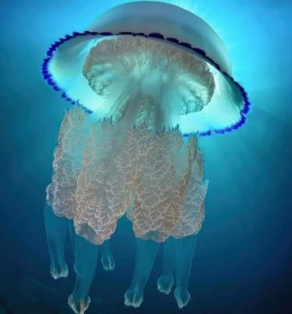 “Например, голубая медуза с гладкими краями — это местный вид медуз, который раньше был более распространен на наших берегах. Красивая медуза с выступающими голубыми краями, укус которой не такой болезненный, как укус медузы-кочевника”:“Можно также выделить другие инвазивные виды красивых медуз, укусы которых не столь болезненны, как у кочующих медуз, например, плавающего колокола”, — пояснила она.