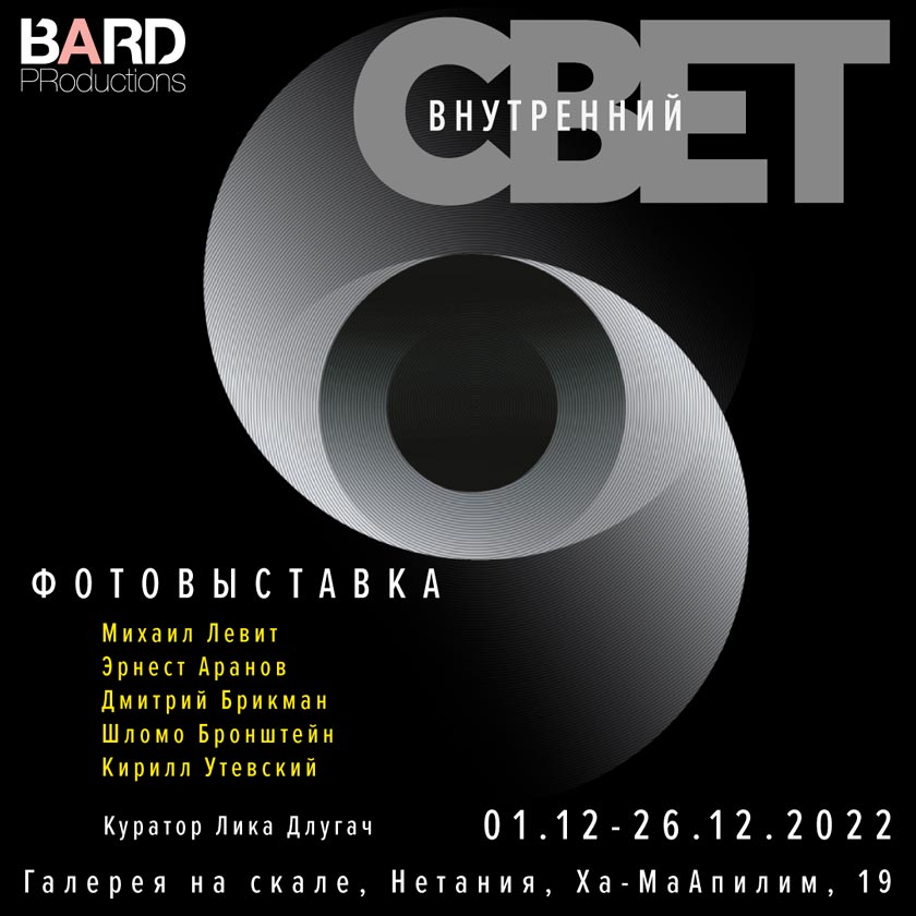 Выставка «Внутренний свет» организована компанией BARD Productions в сотрудничестве с мэрией Нетании. Отдельное спасибо Борису Цирульнику, члену горсовета, руководителю отдела алии и интеграции и неизменному инициатору культурных мероприятий в городе.