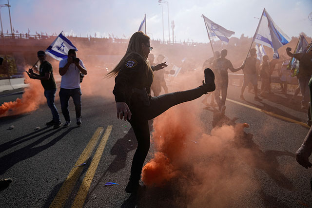11 июля по всему Израилю проходят массовые акции противников юридической реформы,. Поводом для новой волны протестов послужило принятие в первом чтении законопроекта о принципе крайней неприемлемости, который, как полагают участники протестов, угрожает демократии.С раннего утра демонстранты перекрывали движение по трассам. Предпринимались попытки перекрытия проездов в Иерусалим, Тель-Авив, Хайфу, Герцлию, Ришон ле-Цион и другие города страны. Манифестанты блокировали междугородние трассы, улицы городов и перекрестки. Группа активистов ворвалась в 3-й терминал аэропорта «Бен-Гурион».