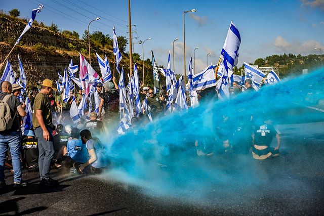 В понедельник, 24 июля, у стен Кнессета, где сейчас проходит обсуждение законопроекта о «достаточной разумности» и начнется процедура голосования, усиливаются акции протеста. Сотрудники полиции против протестующих начали применять водометы, одного из демонстрантов ударили им по голове.